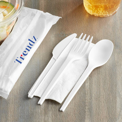 Set di Posate Monouso Biodegradabili e Compostabili Trendz in CPLA di Amido di Mais: Forchetta, Cucchiaio e Coltello