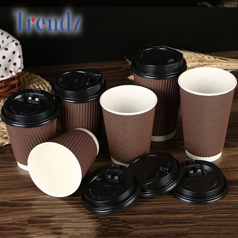 Trendz doppia parete ondulata termoisolante tazza di carta bevande calde caffè da portare via biodegradabile usa e getta tazze di carta con coperchio